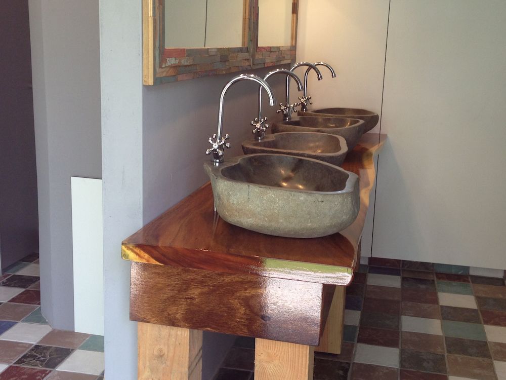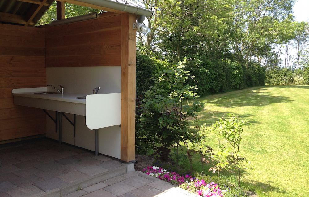 Het wc gebouw is mooi ingericht en voorzien van vloerverwarming. We hebben geen muntensysteem en de douche is bij ons gewoon lekker warm. De een omschrijft het als luxe, de ander als retro en wij vinden het leuk om het net een beetje anders te doen. Het is toch heerlijk als het sanitair er verzorgd uitziet en goed schoon is?